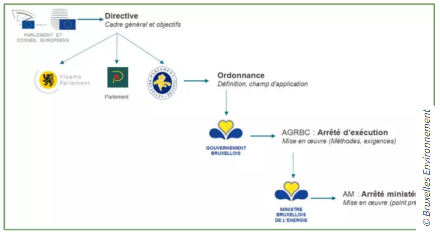 Pour atteindre tous ces objectifs, des obligations sont définies au travers d'arrêtés (régionaux et ministériels), et donc différents d'une Région à l'autre, afin que progressivement, des dispositifs d'économie ou d'optimisation d'énergie soient mis en place dans les différents bâtiments.